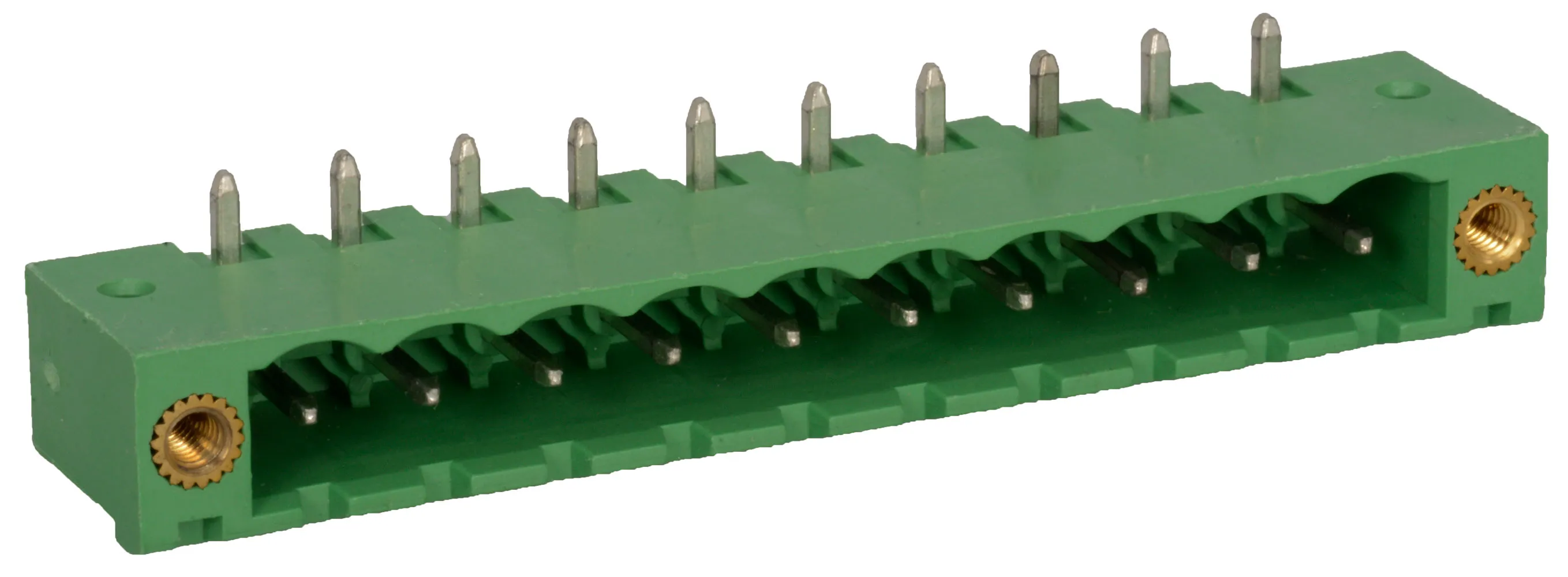 10 Position Shrouded Terminal Header Male Pins Right Angle 0.200" (5.08mm)