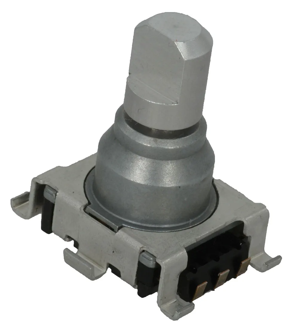11mm Size Flat Metal Shaft Encoder 9 Detents with Push On Switch (SMD)