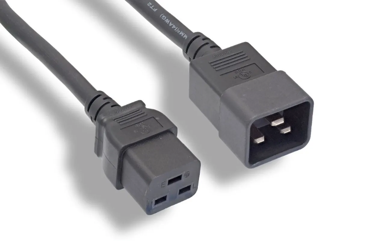 12 AWG 3-Conductor Power Cord C20 Inlet to C19 Plug Black 3 Feet
