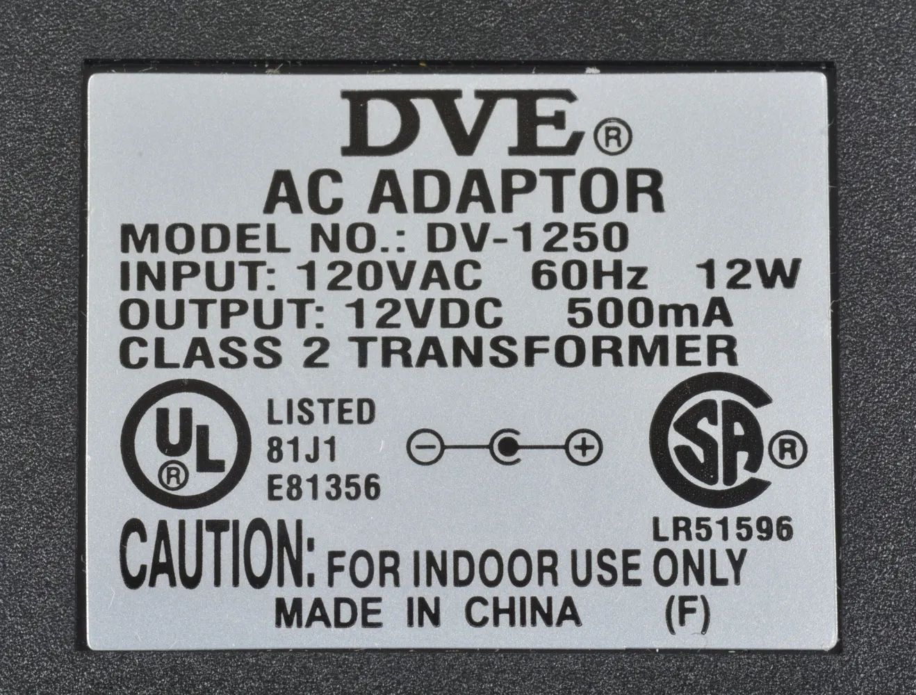 Polarity:Center Positive