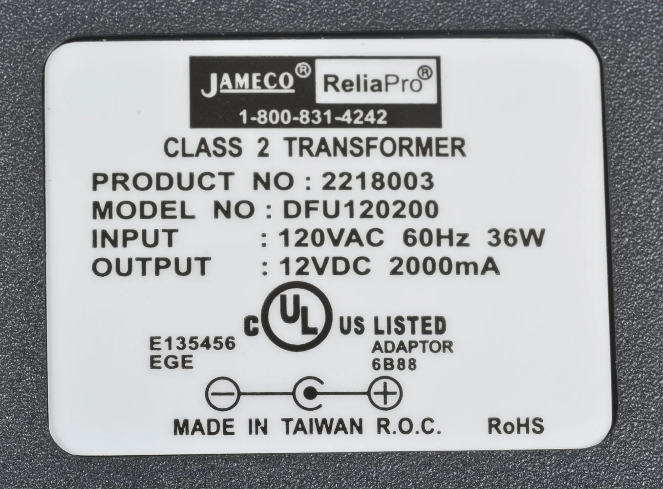 12 Volt 2 Amp 24 Watt Unregulated Wall Adapter
