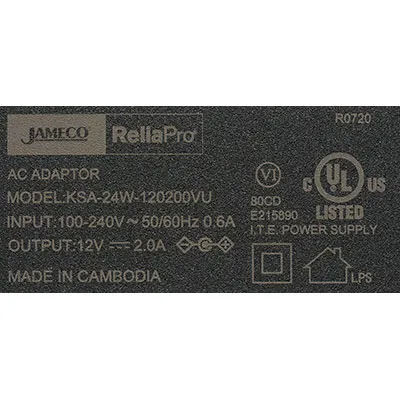 12 Volt 2 Amp 24 Watt Wall Adapter 2.5mm Plug