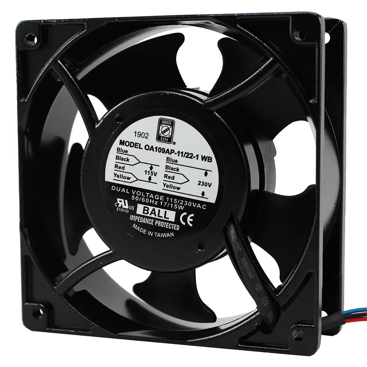 120 mm x 120 mm x 38 mm Tube Axial Fan 115/230 VAC Ball Bearing 105CFM 42dBA 12" Wires