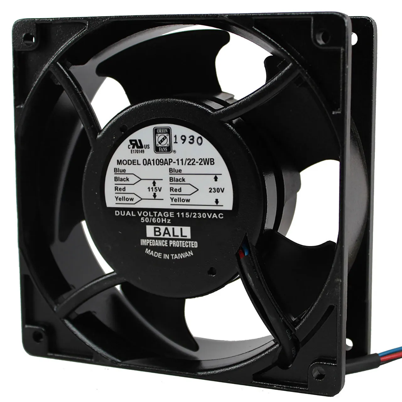 120 mm x 120 mm x 38 mm Tube Axial Fan 115/230 VAC Ball Bearing 71CFM 35dBA 12" Wires
