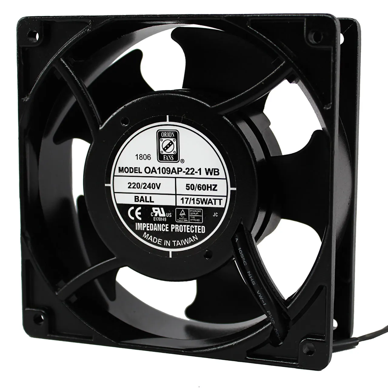 120 mm x 120 mm x 38 mm Tube Axial Fan 230 VAC Ball Bearing 104CFM 42dBA 12" Wires