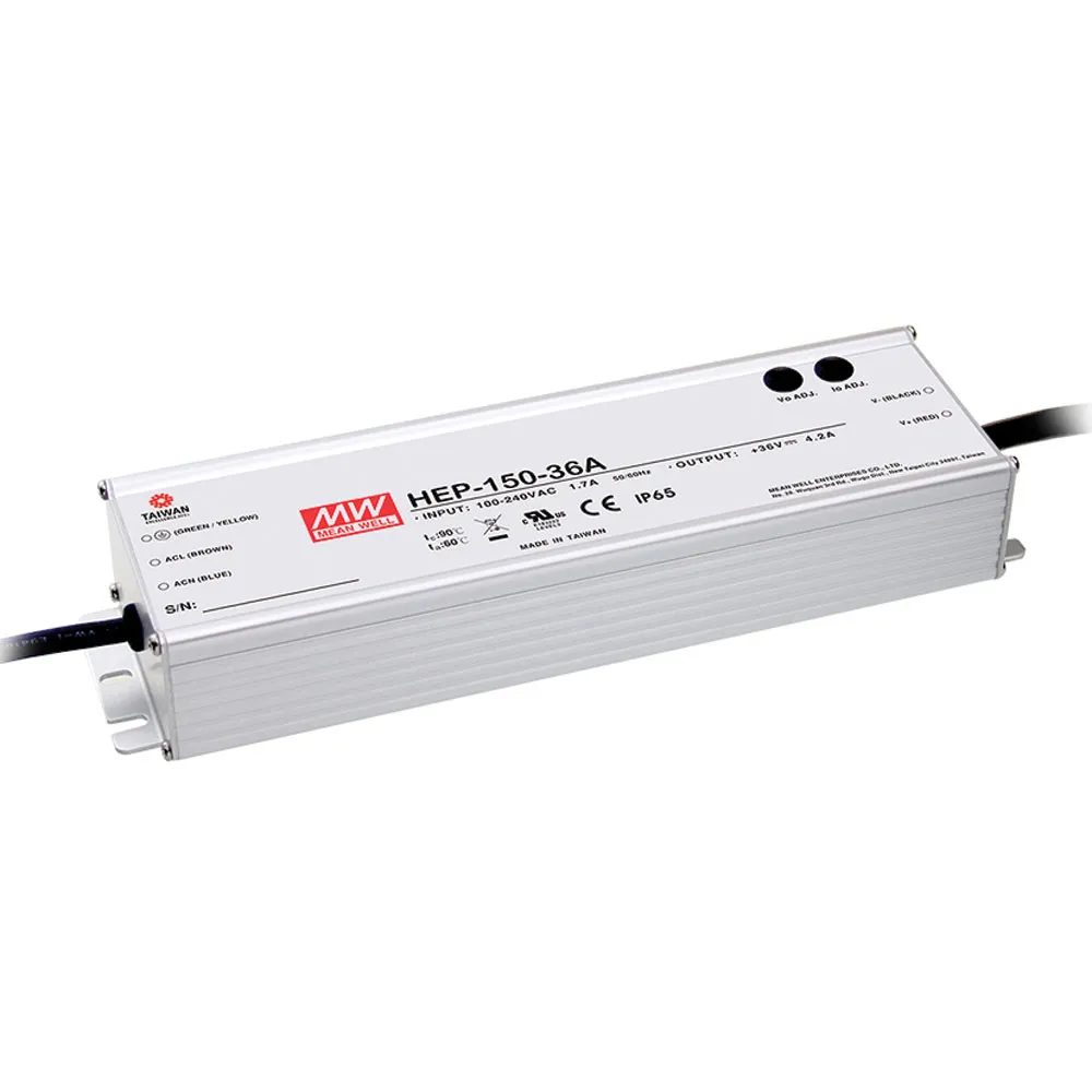 12 Volts @ 12.5 AmpsHEP-150 is a 150W industrial AC-DC power supply featuring outstanding capability to operate under highly humid, dusty, oily, and high-vibration harsh environments. The entire series is housed with the aluminum case and fully potted with heat-conducted silicone.