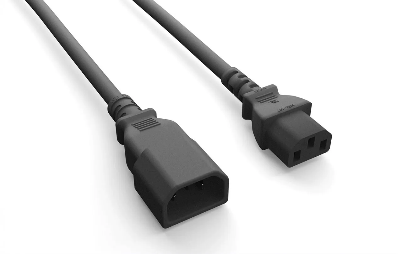 14 AWG 3-Conductor Power Cord C14 Inlet to C13 Plug Black 12 Feet