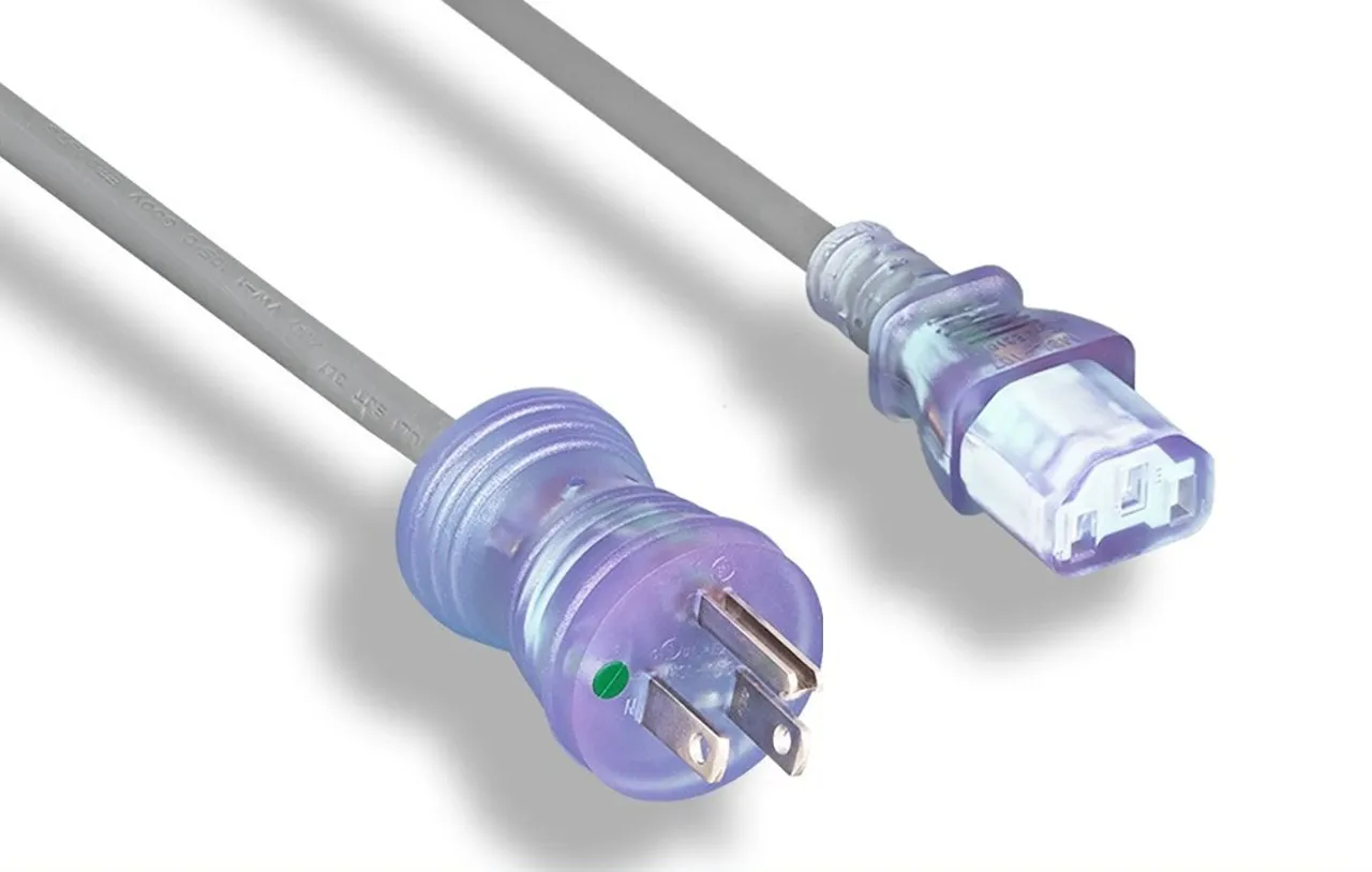 16 AWG Hospital Grade Power Cord NEMA 5-15P Clear Plug to C13 Plug 13A 125V Gray 10 Feet