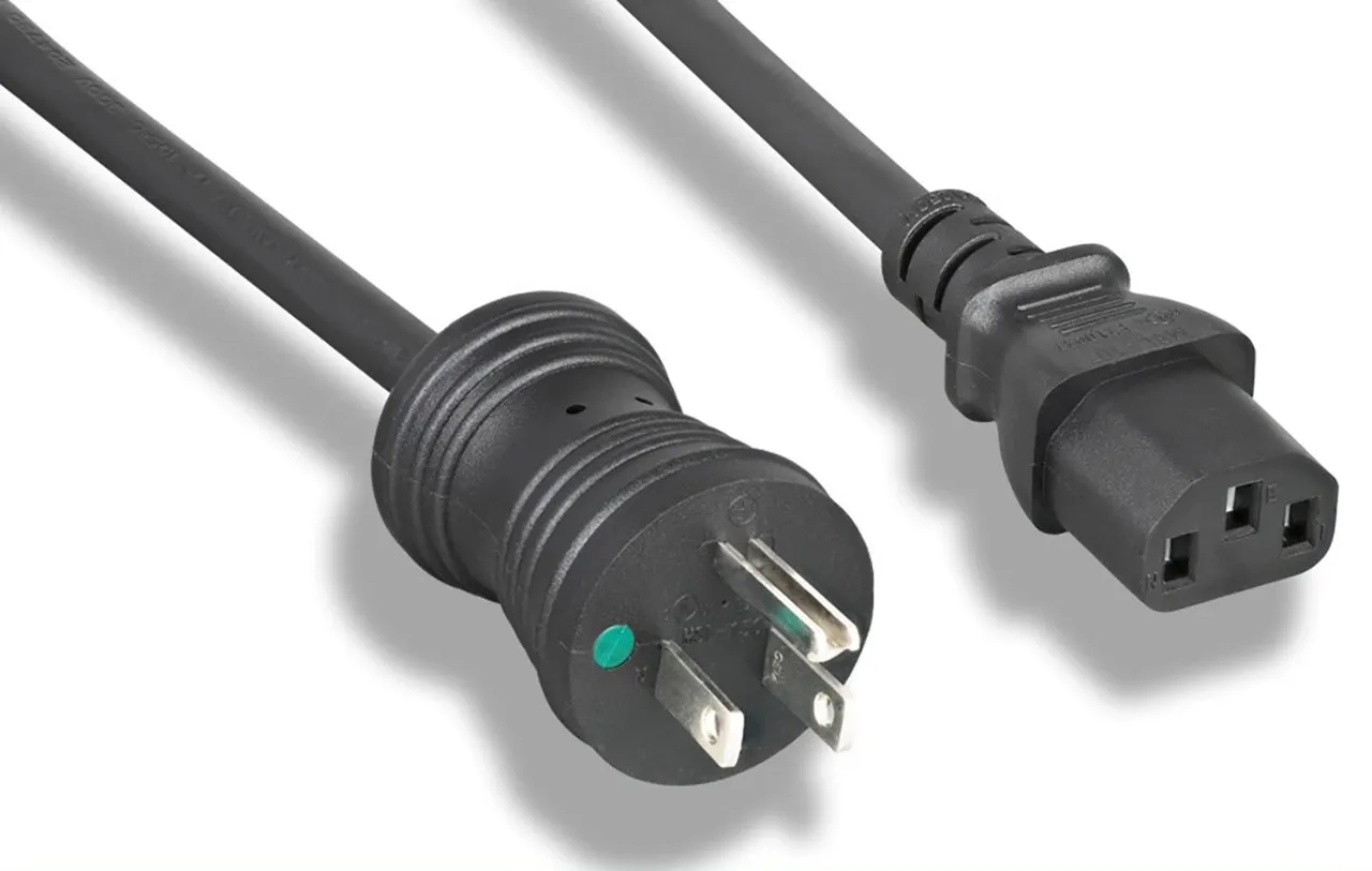 16 AWG Hospital Grade Power Cord NEMA 5-15P Plug to C13 Plug 13A 125V Black 10 Feet