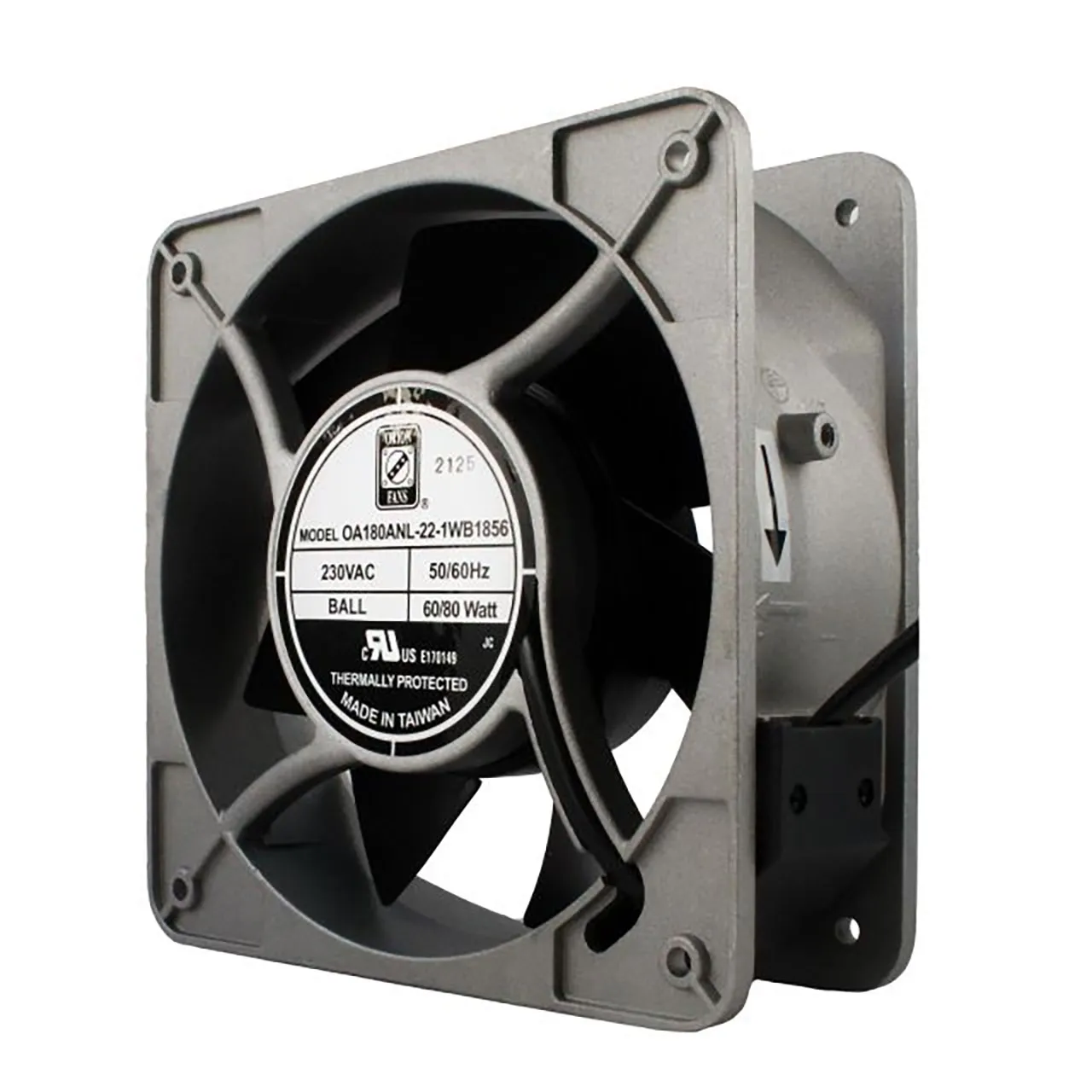 180 mm x 180 mm x 65 mm Tube Axial Fan 230 VAC Ball Bearing 400CFM 65dBA 12" Wires