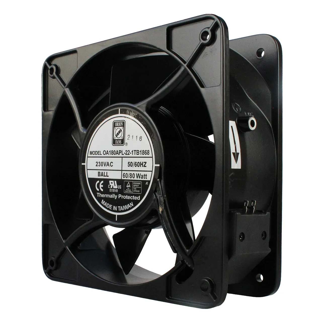 180 mm x 180 mm x 65 mm Tube Axial Fan 230 VAC Ball Bearing 405CFM 60dBA 12" Wires