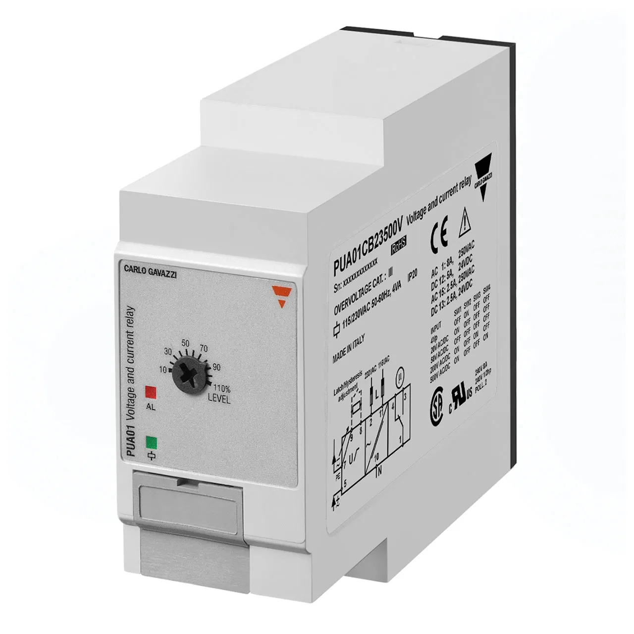 1-Phase Monitoring Relay Over Voltage/Current 1 SPDT Relay Output IP20 PLUG-IN mounting Measuring Range 2 to 500V AC/DC Power Supply 115/230Vac 36x80x94mm housing