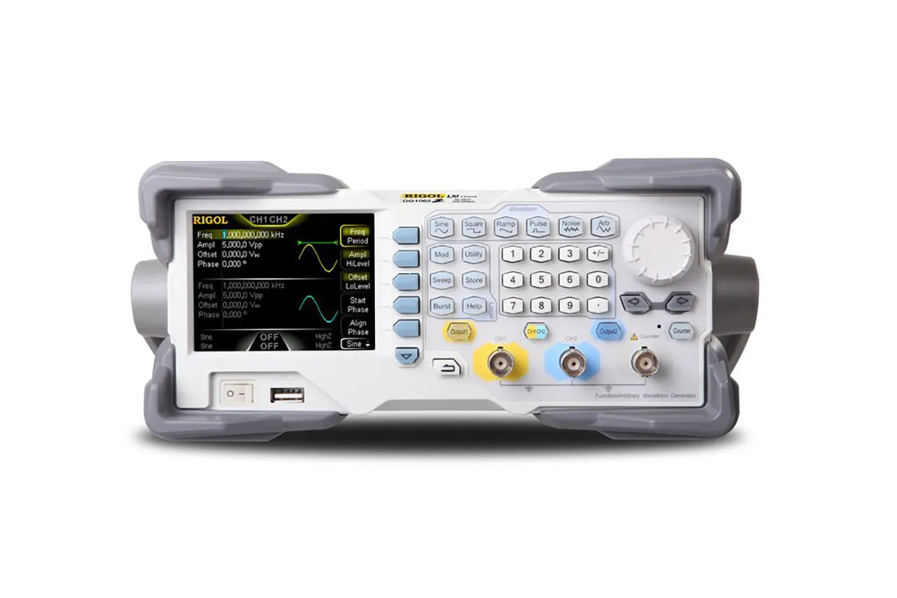 This is a 2 Channel Waveform Generator from Rigol with 60 MHz bandwidth and 200 MS/s sample rate. It has deep memory arbitrary waveform capability and Sifi signal fidelity technology.