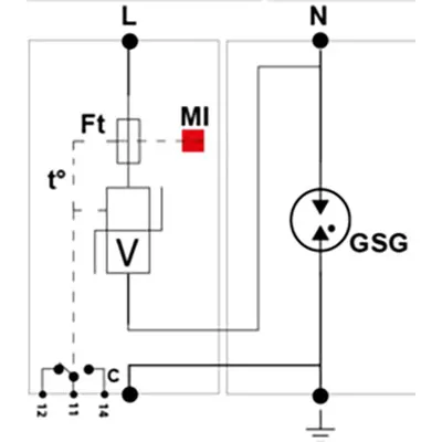 230 VAC 1-Phase 2W+G DIN Rail Surge Protection Device Multi-MOV+GSG 275V MCOV 75kA IMAX
