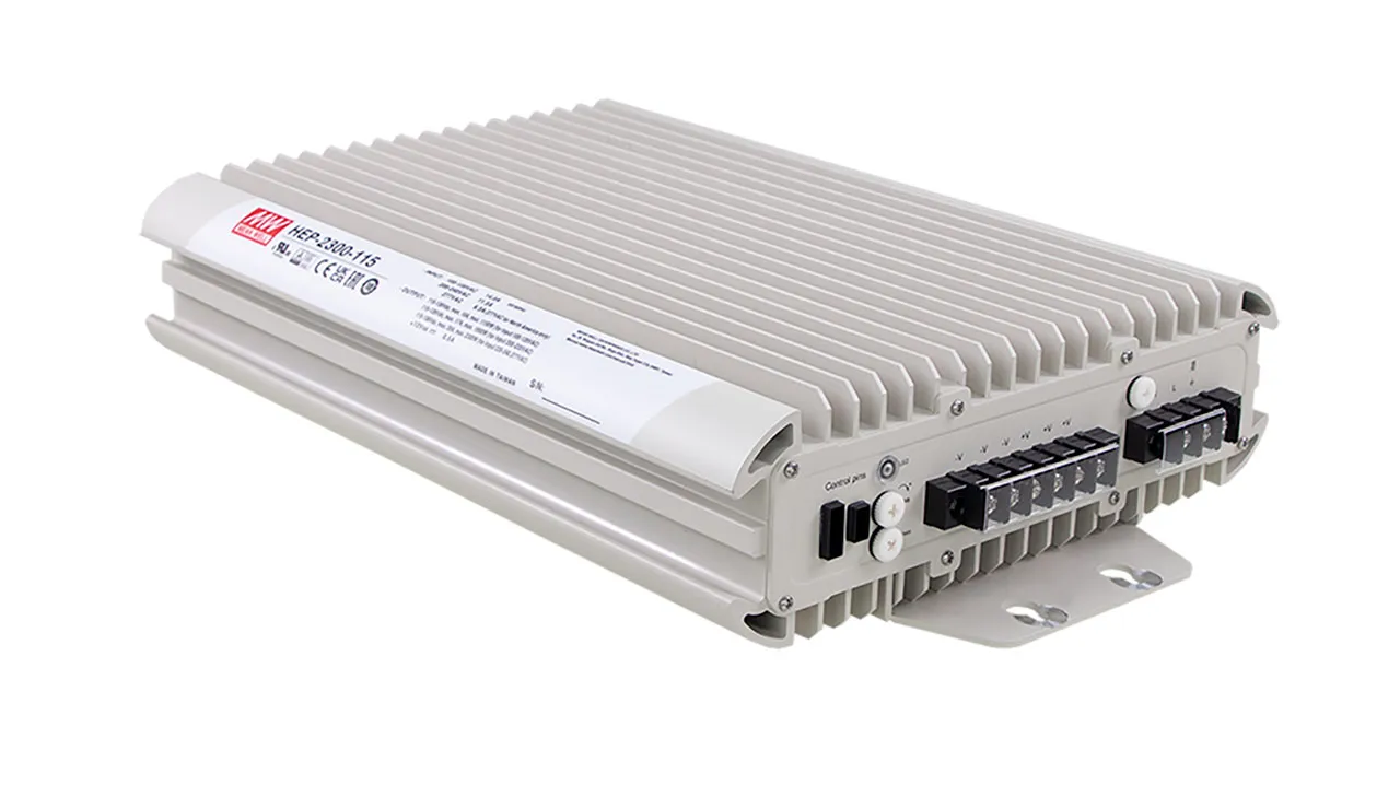 The HEP-2300 is a 2300-watt industrial AC-DC power supply featuring the outstanding capability to operate under highly humid, dusty, oily, and high-vibration harsh environments. The entire series is housed with the aluminum case and fully potted with heat-conductive glue. Adopting the full range of 90-305VAC input, the series provides an output voltage of 55 VDC. In addition to the high efficiency up to 95.5%, that the series operates from -40C to 70C under free air convection without a fan. HEP-2300 has the complete protection functions and 10G anti-vibration capability. It complies with the international safety regulations such as TUV EN62368-1, UL62368-1 and design refers to EN61558-1 and EN60335-1. HEP-2300 series serves as a high-performance power supply solution for various industrial and 4G/5G telecom applications.