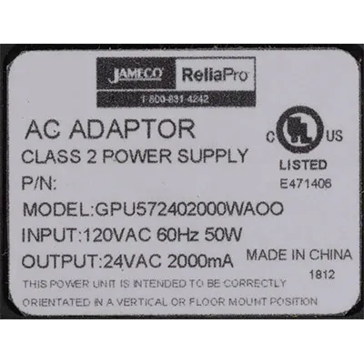 24 Volt AC 2000 mA 48 Watt Linear Wall Adapter 2.5mm Plug