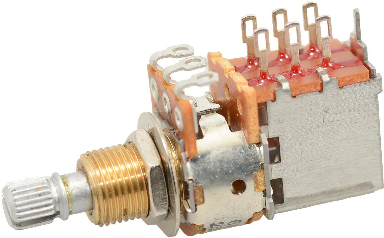 250K Ohm 16mm Metal Knurled Shaft Linear Taper Potentiometer with DPDT Push ON/OFF Switch Solder Eyelet