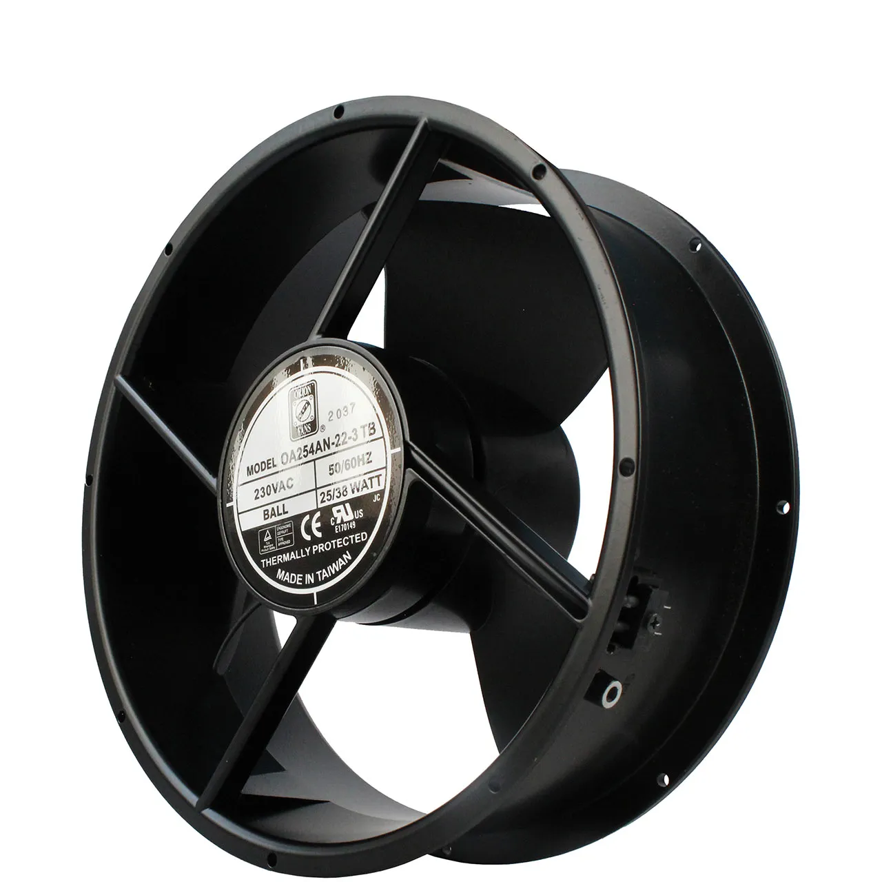 254 mm x 254 mm x 89 mm Tube Axial Fan 230 VAC Ball Bearing 600CFM 55dBA Terminals