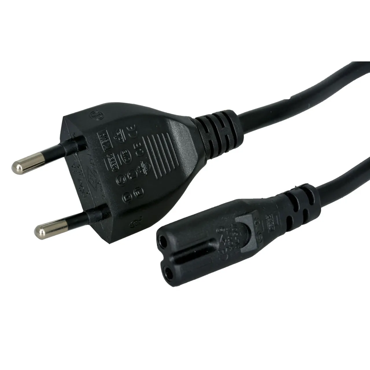 2-Conductor AC Power Cord 0.75mm2 CEE 7/16 Europlug to IEC-60320-C13 H03VVH-2 Jacket 6 Feet Black