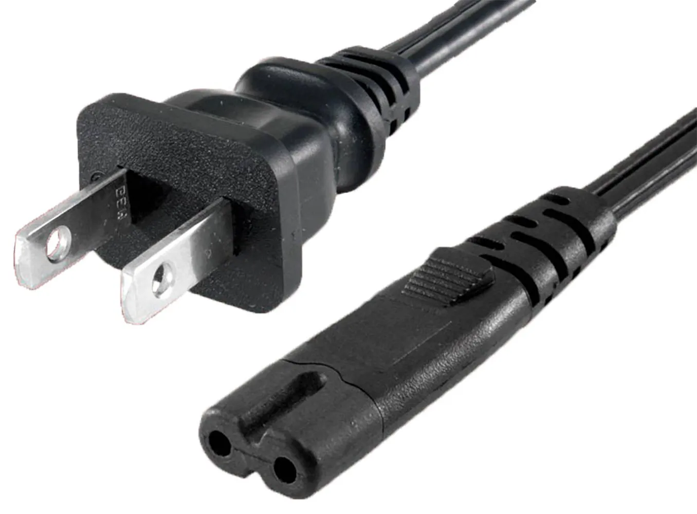 2-Conductor AC Power Cord 18 AWG NEMA 1-15P to C7 Plug SPT-2 Jacket 6.6 Feet Black