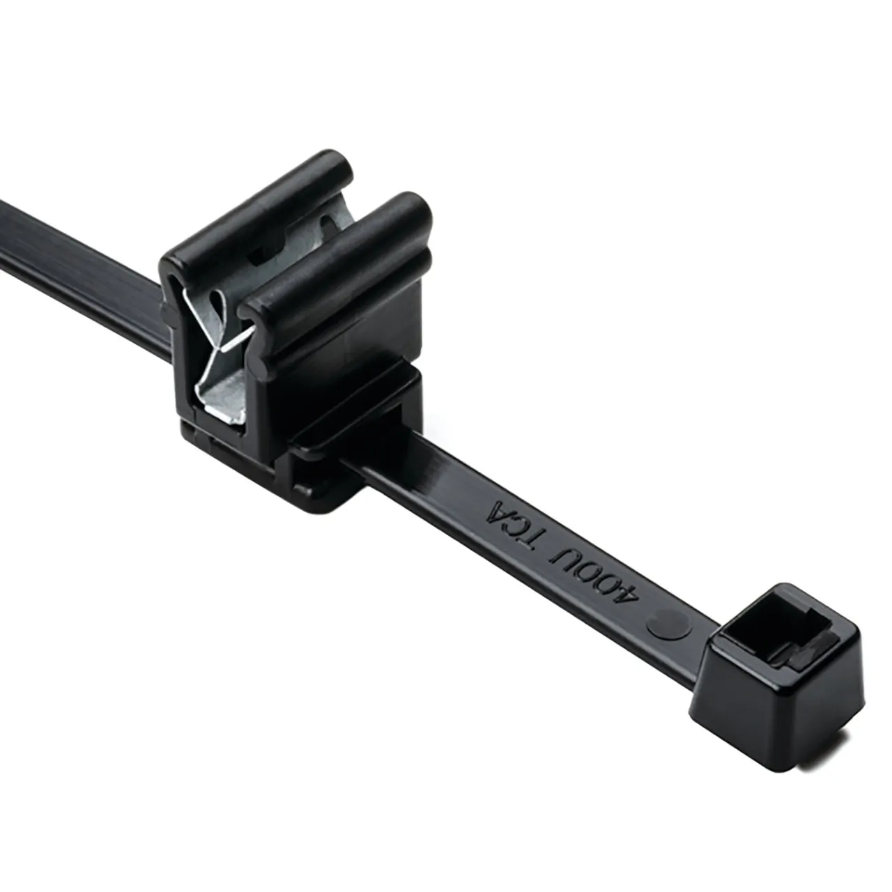 2-Piece Cable Tie with Edge Clip, 8.0" Long, EC4A, 1 - 3 mm Panel, 50lb, PP/PA66HIRHSUV, Black, 500 per Package