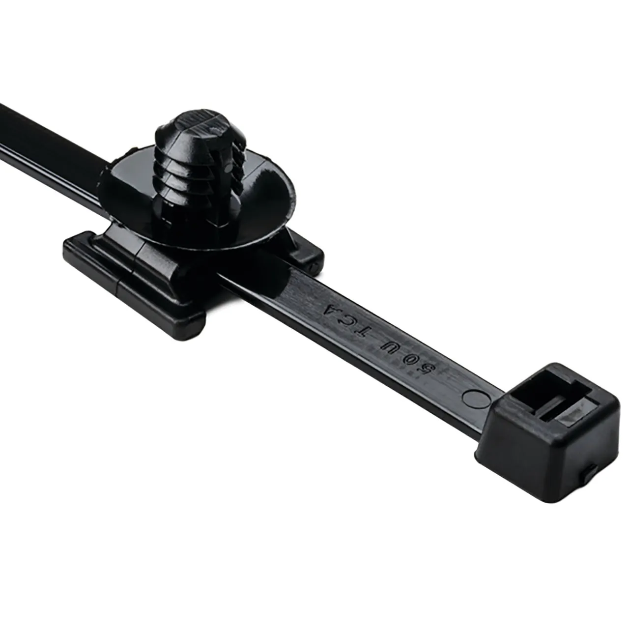 2-Piece Cable Tie with Fir Tree Mount, 15" L, 0.35" (9mm), 0.04 - 0.25" Panel, PA66HIRHSUV, Blk, 100 per Package