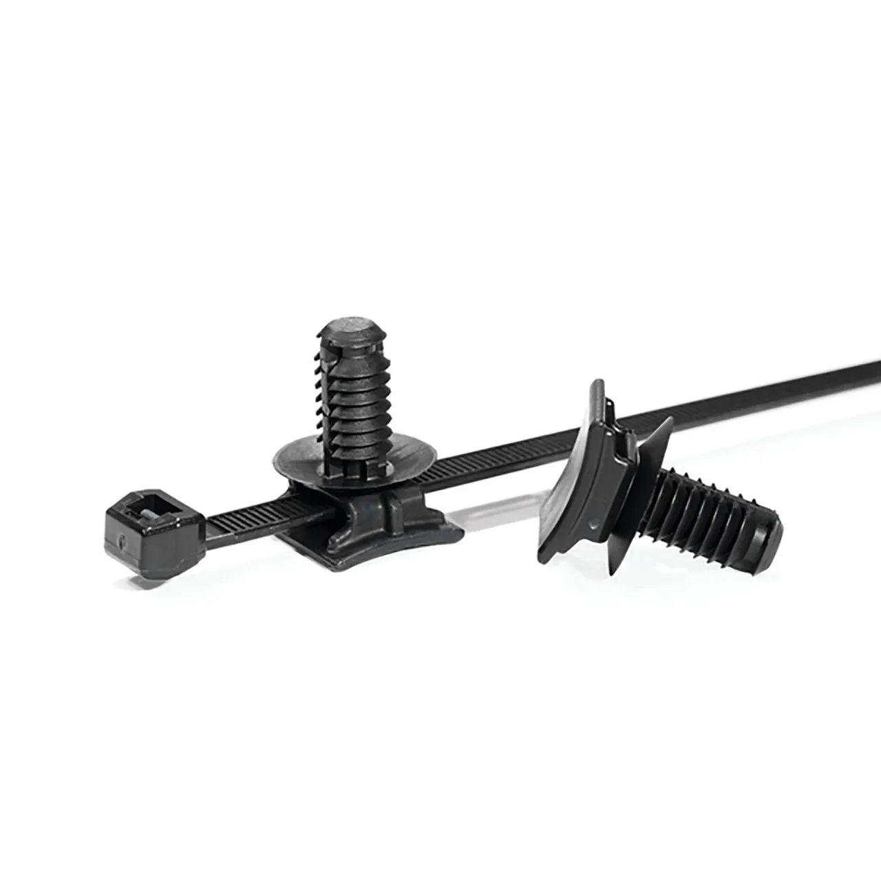 2-Piece Cable Tie with Fir Tree Mount, 15" L, 0.35" (9mm) Hole, 120lb, PA66HS/PA66HIRHSUV, Black, 100 per Package