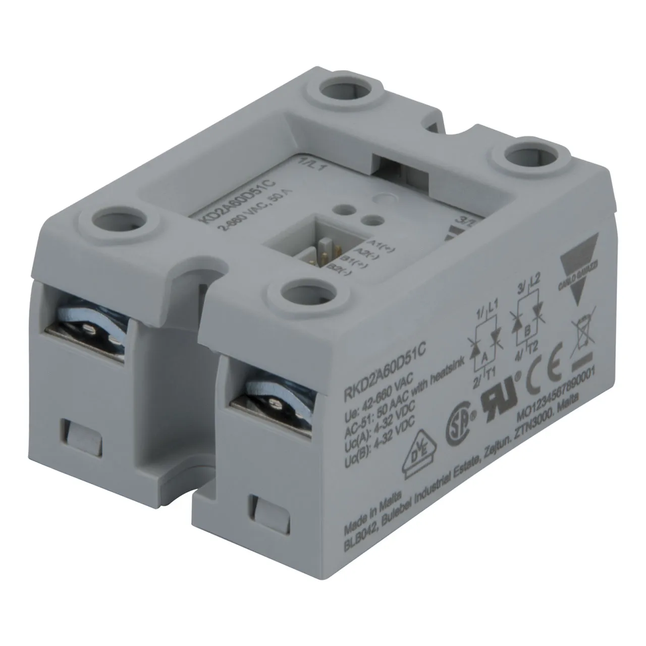 2-Pole Panel Mount SSR Zero-Cross Switching Dual Control 42-660VAC (1200 Vp) 75Aac 4-32VDC Built-In OV Protection Certified (EN60335-1)
