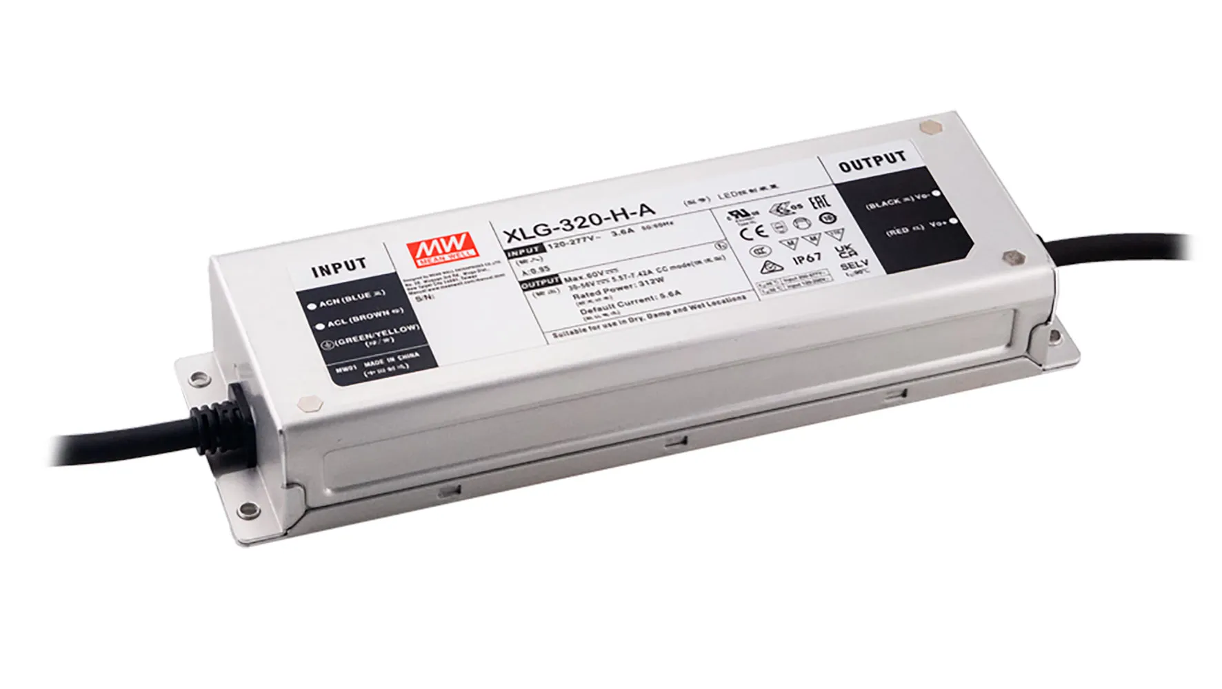 312W Constant Power Mode LED Driver 5600mA 30V to 56V IP67 Output Adjustable