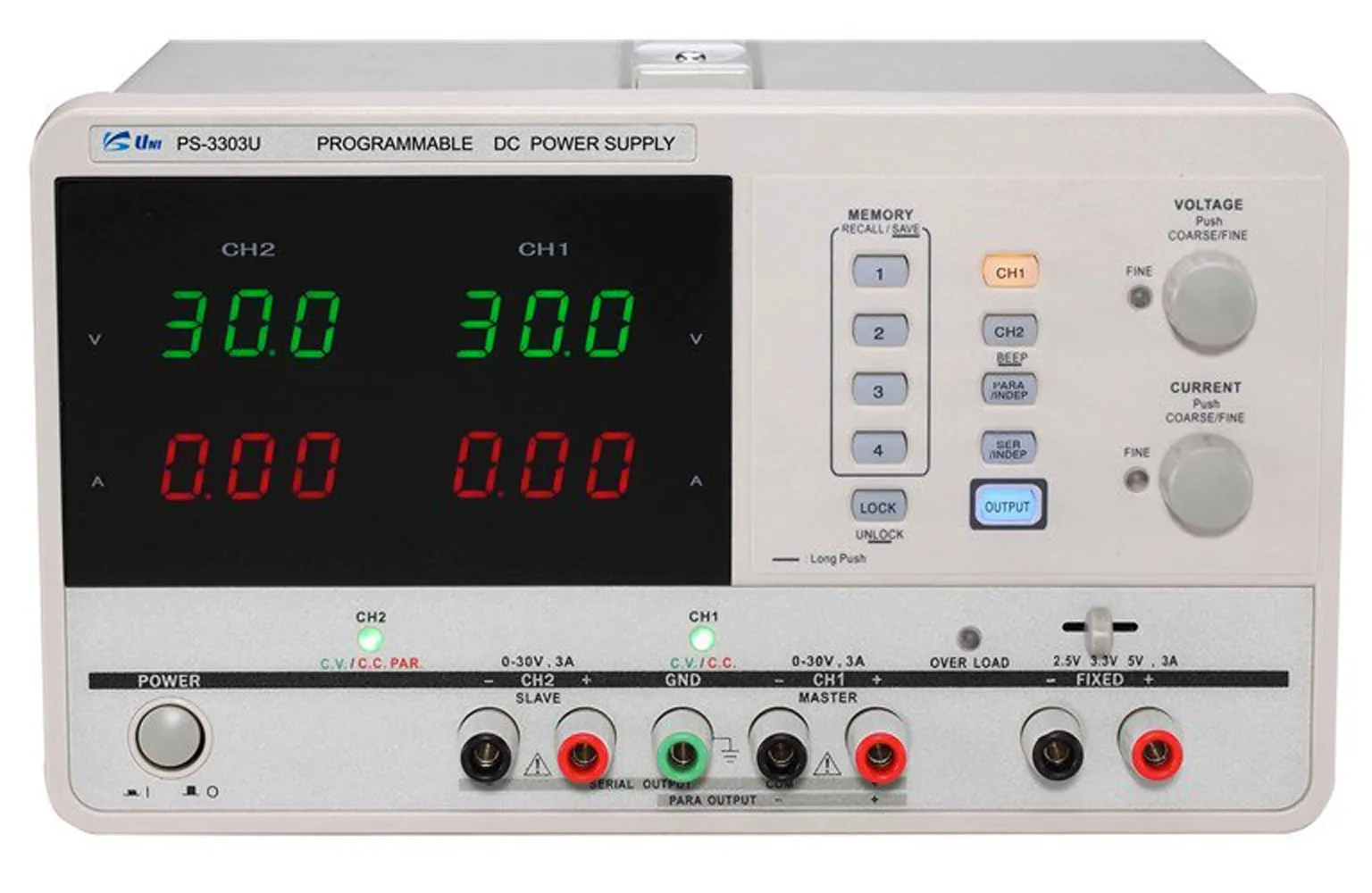 Channel 3: 2.5/3.3/5 Volts selectable @ 3 Amps