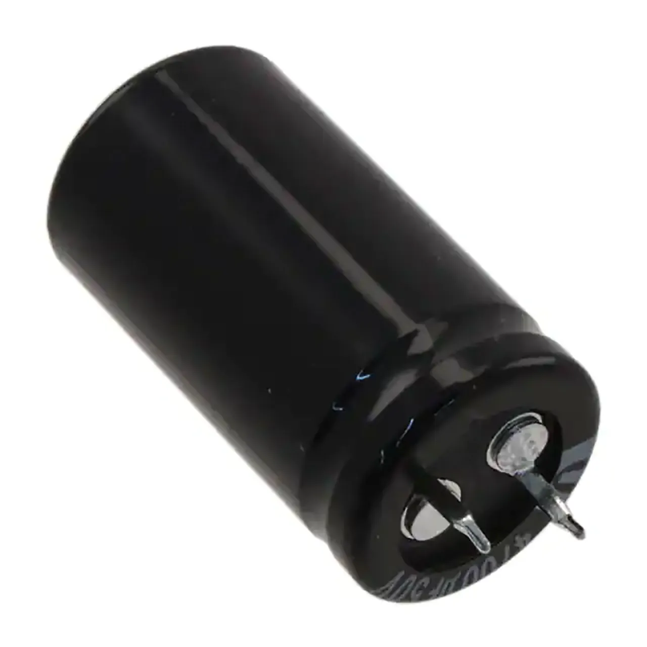 This aluminum snap in capacitor has a capacitance of 330µF and a voltage rating of 200.