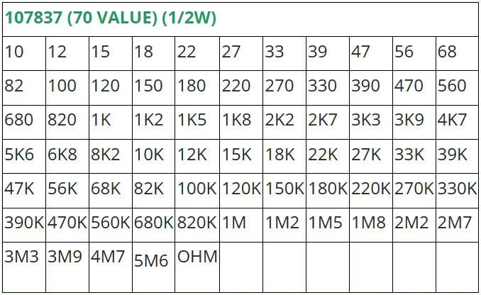 350 Piece 1/2 Watt 5% Resistor Assortment (70 Values)