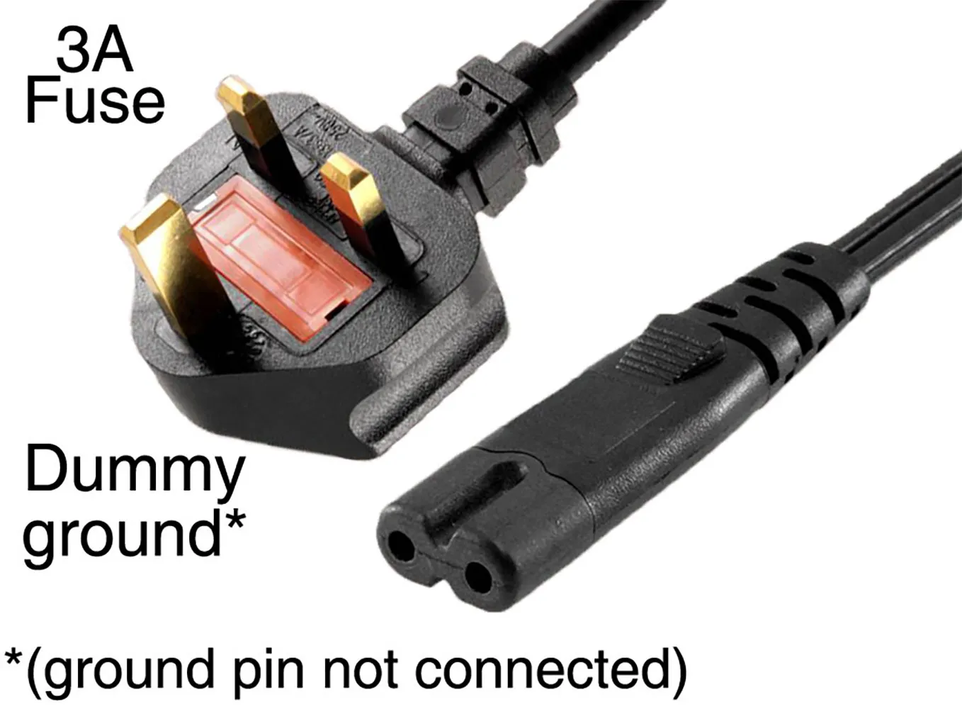 3-Conductor AC Power Cord 0.75 mm² BS 1363 UK3 (Fused) to IEC 60320 C7 H03VVH2-F Jacket 6.58 Feet Black