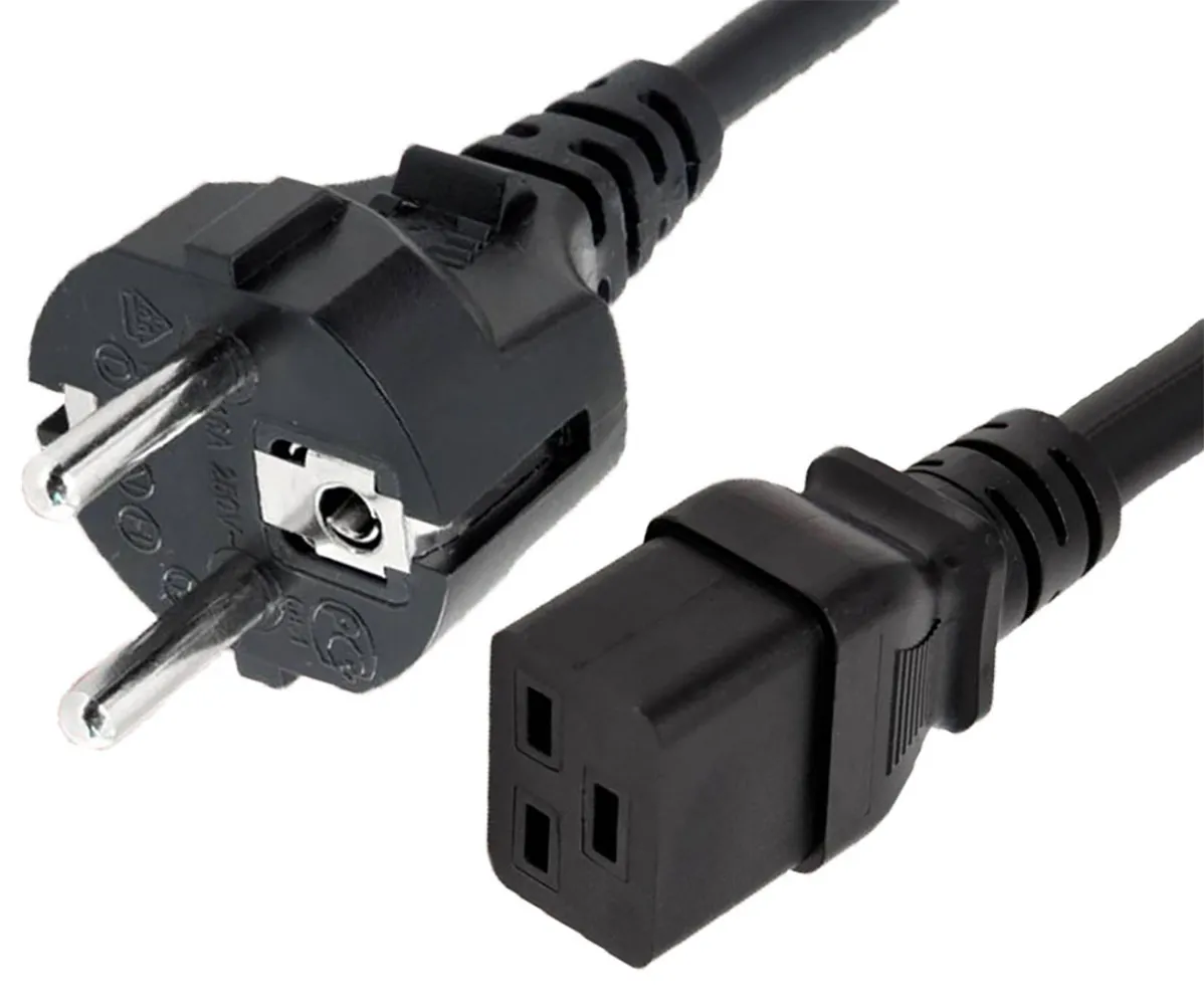 3-Conductor AC Power Cord 1.5 mm² CEE 7/7 Euro Schuko to IEC 60320 C19 H05VV-F Jacket 8.16 Feet Black