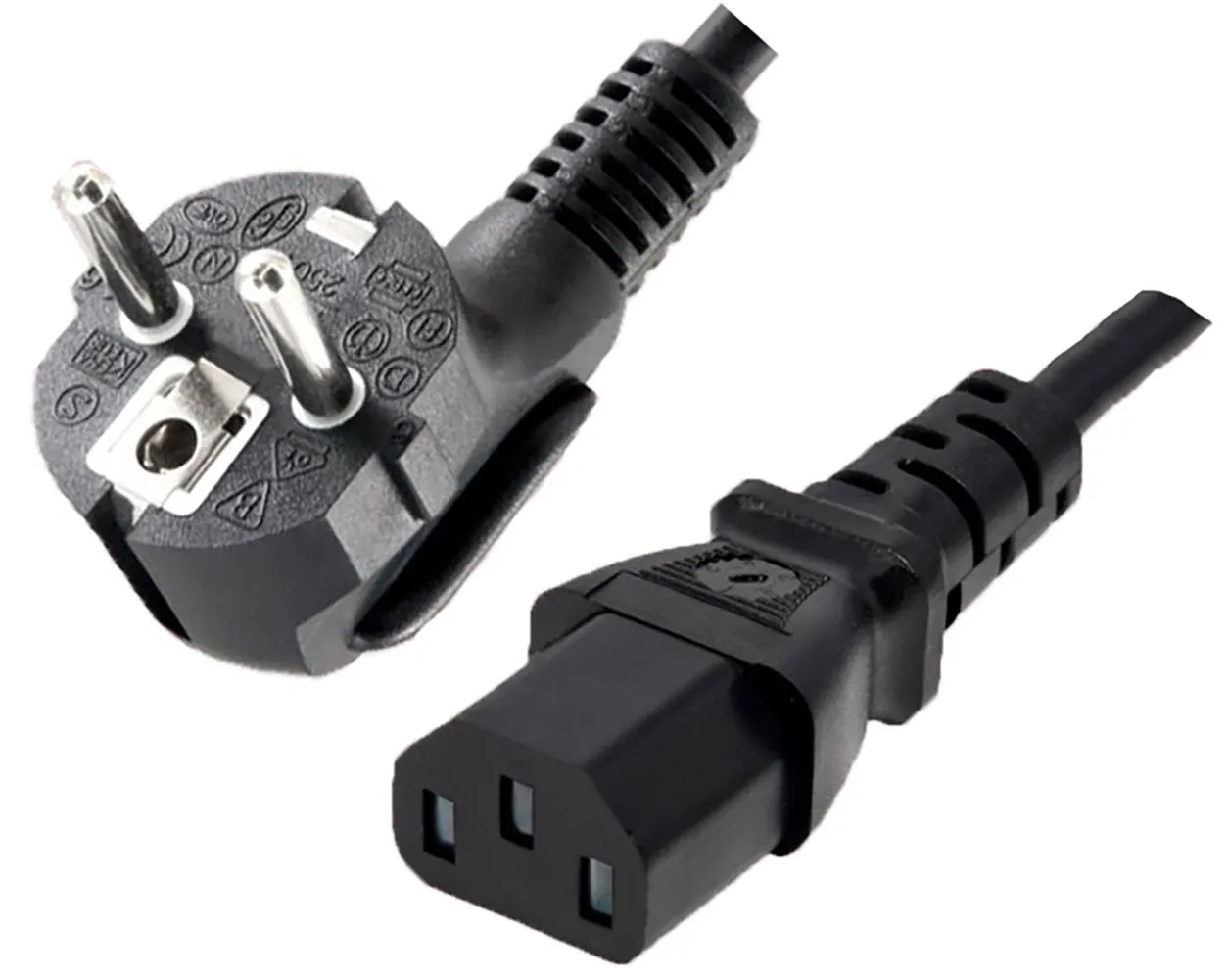 3-Conductor AC Power Cord 1.00 mm² CEE 7/7 Euro Schuko (Right Angle) to IEC 60320 C13 H05VV-F Jacket 8.16 Feet Black
