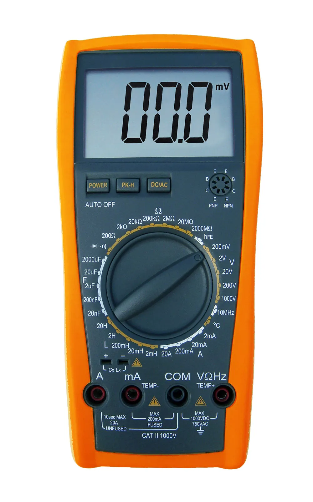 - Resistance (±0.8%+3): 200Ω, 2kΩ, 20kΩ, 200kΩ, 2MΩ, 20MΩ, 2000MΩ