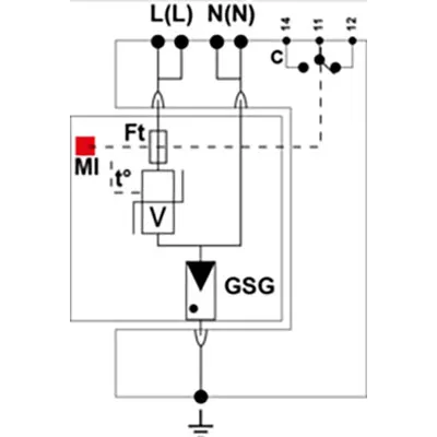 400/230 VAC 1S-Phase 2W+G DIN Rail Surge Protection Device MOV+GSG 255V MCOV 40kA IMAX