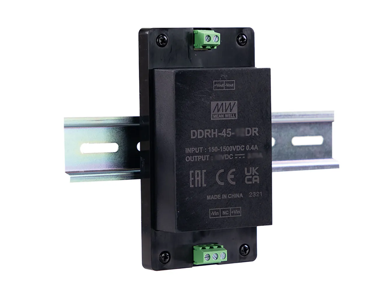 This series has three model formats, PCB mount, screw terminal, and DIN rail mount. DDRH-45 is designed to meet UL1741 (by request) and IEC62109-1 standard. It is suitable for industrial automation, surveillance, telecommunications and can be widely deployed in the applications of new energy generation such as solar power, and windmill power generation, photovoltaic power systems, high voltage inverting, DC bus centralized applications, ESS, charging pile, railway and so forth.