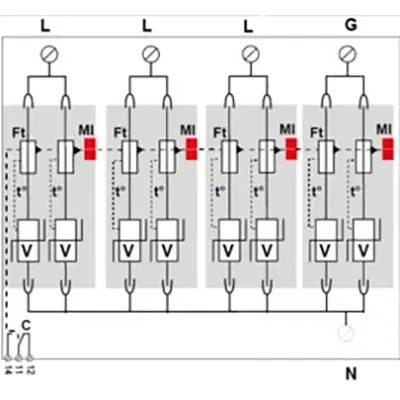 480/277 VAC 3-Phase 4W+G Wye DIN Rail Surge Protection Device Multi-MOV 320V MCOV 75kA IMAX