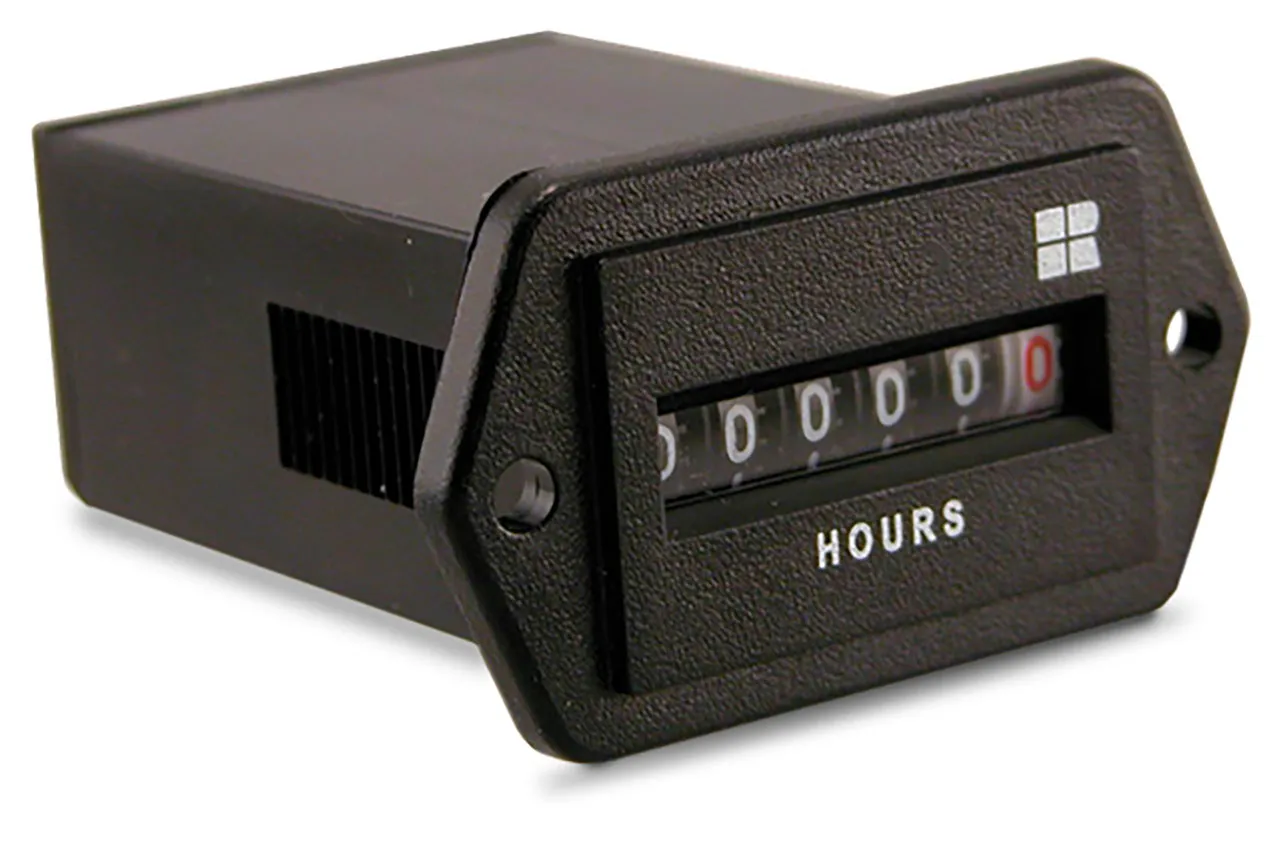 6 Digit Electromechanical Hour Meter, 10-80 VDC, 2-Hole Housing, 1/4" Spade Terminals, Quartz Timing