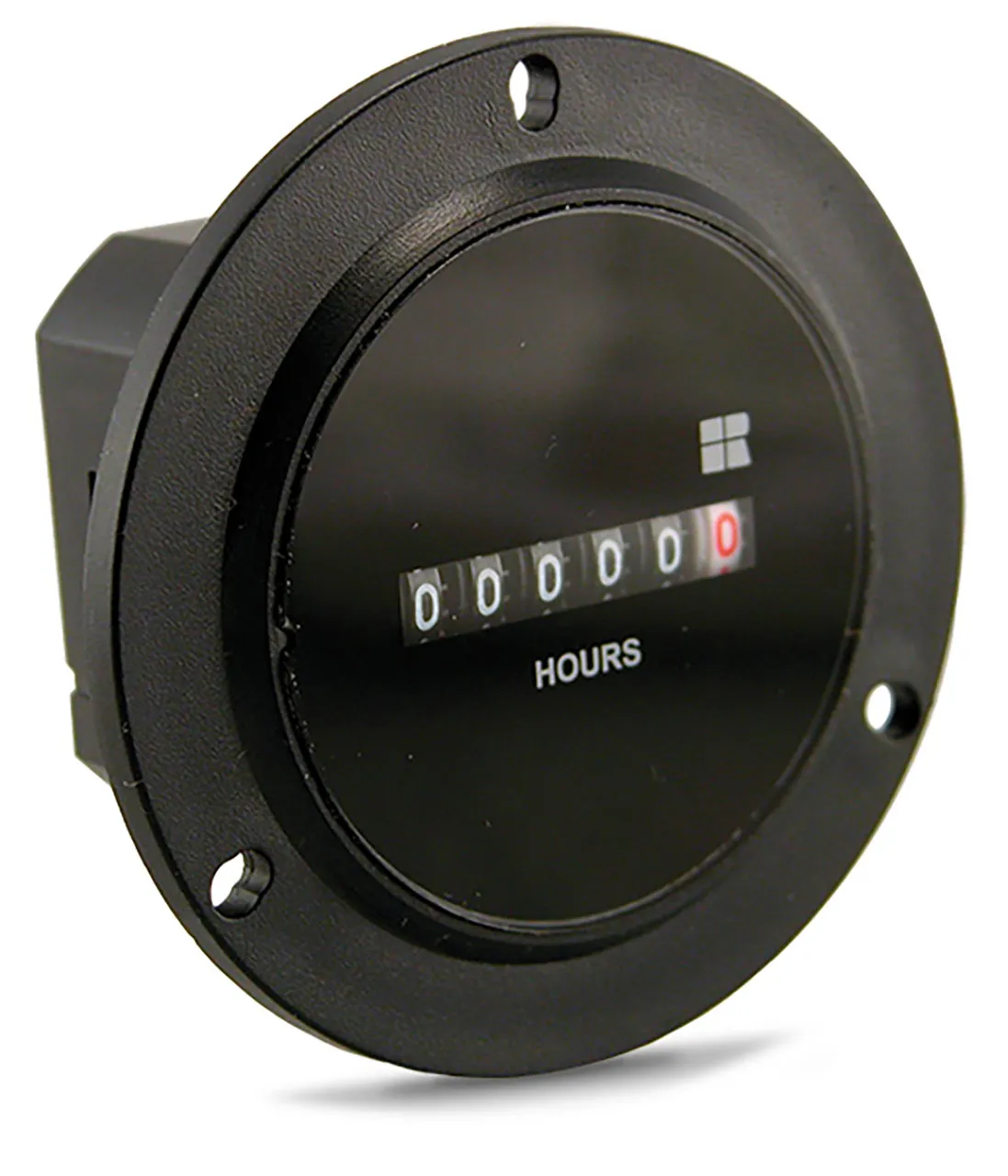 6 Digit Electromechanical Hour Meter, 10-80 VDC, 3-Hole Round Housing, 1/4" Spade Terminals, Quartz Timing