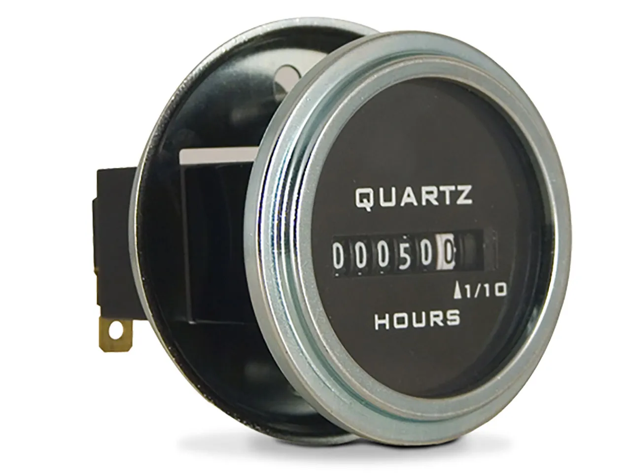 6 Digit Electromechanical Hour Meter, 10-80 VDC, Round Cup Mount Housing, 16" Leads, Quartz Timing