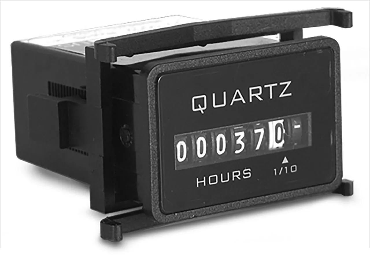 6 Digit Electromechanical Hour Meter, 90-264 VAC, Flush Rectangular Housing, 1/4" Spade Terminals, Quartz Timing