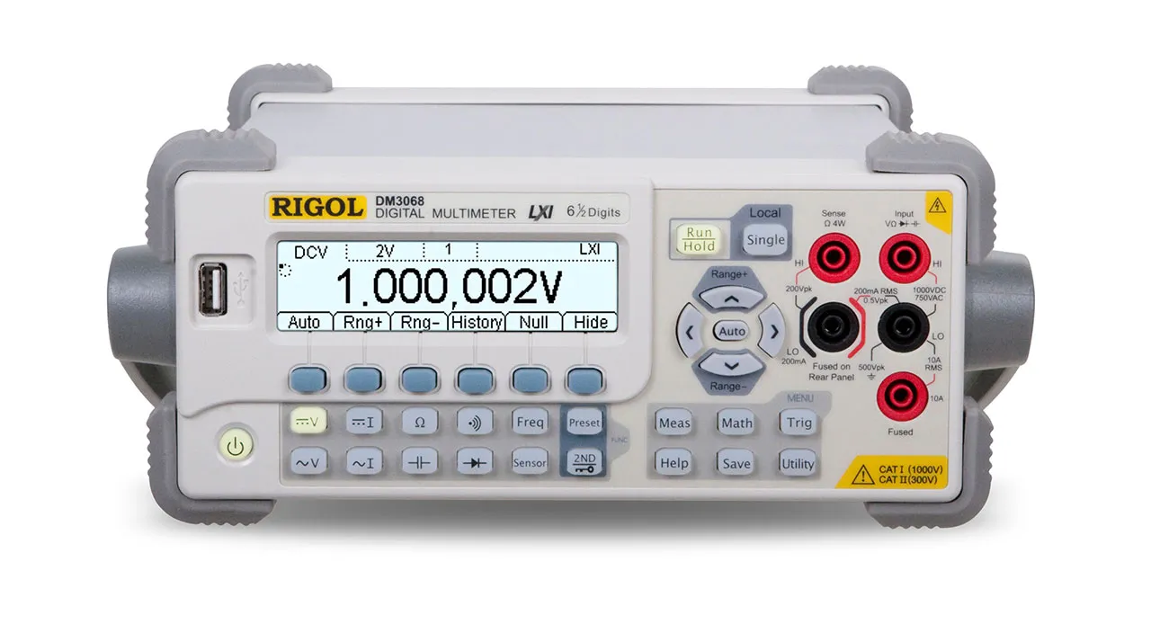 DM3068 is a digital multimeter designed with 6-½ digits readings resolution especially fitting to the needs of high-precision, multifunction and automatic measurement. It adopts many today's new technologies to achieve high performance, abundant features in the same class. It's designed to aim at the requirements of the largest DMM market from the research, education, industrial electronics, consumer electronics and automotive industries with its innovative technology, industry leading specifications, powerful measurement functions and broad analysis capabilities.