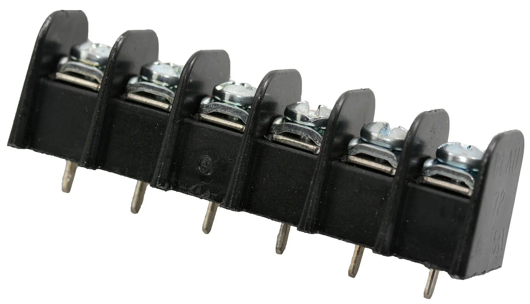 12 Contacts, 6 PositionsThese series 77 screw terminals are ultrasonically welded into the thermoplastic insulator. The terminal cannot be twisted or rotated even under excessive force.