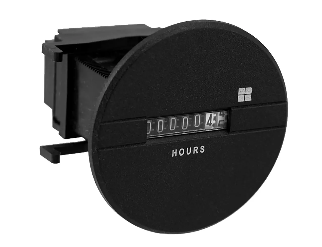 7 Digit Electromechanical Hour Meter, 10-80 VDC, SAE Flush Round Housing, Spade Terminals