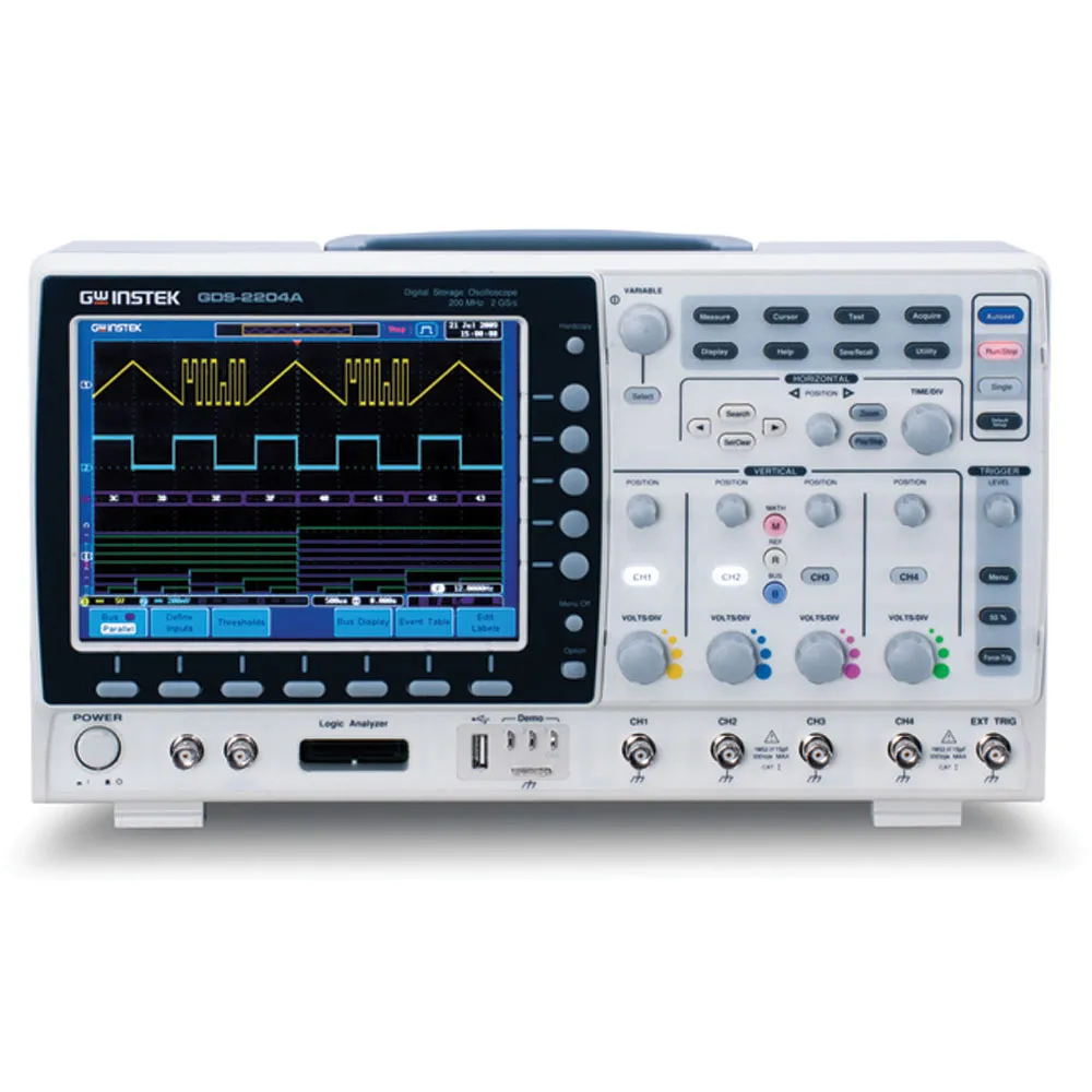 2GSa/s Real-time Sampling Rate and up to 300MHz BandwidthThe GDS-2000A Series Digital Storage Oscilloscope offers 2 and 4-channel configurations and wide bandwidth selections, including 300MHz, 200MHz, 100MHz and 70MHz. Each model provides 2GSa/s maximum real-time sampling rate and 100GSa/s high-speed equivalent-time sampling rate. Equipped with an 80-inch 800x600 high-resolution TFT LCD display, 1mV/div to 10V/div vertical range and 1ns/div to 100s/div time base, the GDS-2000A Series is able to faithfully demonstrate waveforms of complicated and obscure signals.