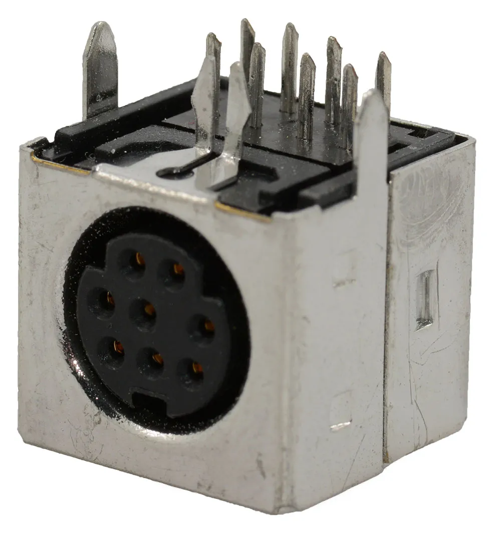 8 Position Female Circular Mini DIN Connector Right Angle PC Mount