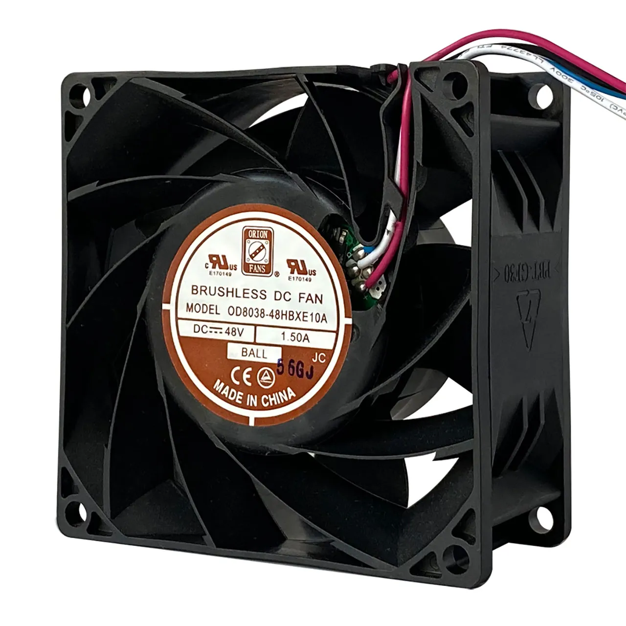 80 mm x 80 mm x 38 mm Tube Axial Fan 48 VDC Ball Bearing 105CFM 62.3dBA 12" Wires (4)