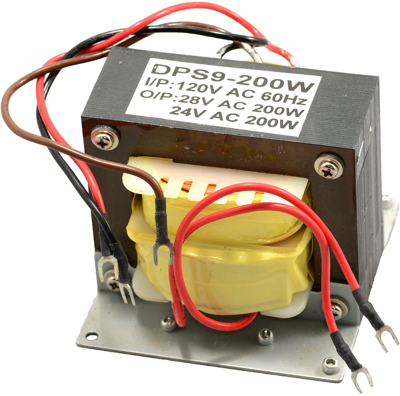 8A 24VAC/28 VAC 200W Dual Voltage Power Transformer 120VAC Primary Wire Leads